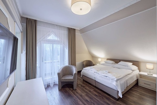 A Panzió területén 3 épület található. Az A épület a Recepció épülete, jobbra helyezkedik el a Panzió területén belül. Megközelíthető legegyszerűbben a teraszon keresztül, át a recepció folyosóján, valamint a kerten keresztül, a biliárd terem előtt jobbra fordulva (este 8 óra után csak ez az az útvonal használható). Összesen 44 fő együttesen elszállásolható. A B épület balra helyezkedik el a Panzió területén belül. Megközelíthető legegyszerűbben a kerten keresztül, a ping-pong rész előtt balra fordulva. Összesen 9 fő együttesen elszállásolható. A D épület leghátul helyezkedik el a Panzió területén. Megközelíthető az Apát utca felől a kerten keresztül, át a ping-pong részen, majd a játszótér mellett elhaladva a külső medence előtti bejáraton. Valamint a Móra Ferenc utca felől a kiskapun át balra az első épület. Összesen 45 fő együttesen elszállásolható. Az apartman 45 m2 alapterületű, egyerkélyes, nemdohányzó szobákkal rendelkezik. Az A épületben a 3. emeleten található. Maximum 7 fő elszállásolására alkalmas. Egyik szoba pótágyazására van lehetőség mindössze. A szobákban maximum 5 felnőtt fér el, a nappaliban 1 felnőtt, vagy 2 gyerek. Babaágy mindkét szobában elhelyezhető. (Kérjük, foglaláskor jelezze felénk előzetesen kérését.) A szobák külön-külön saját fürdőszobával rendelkeznek és zuhanyzóval, toalettel, tükörrel, polccal felszereltek.