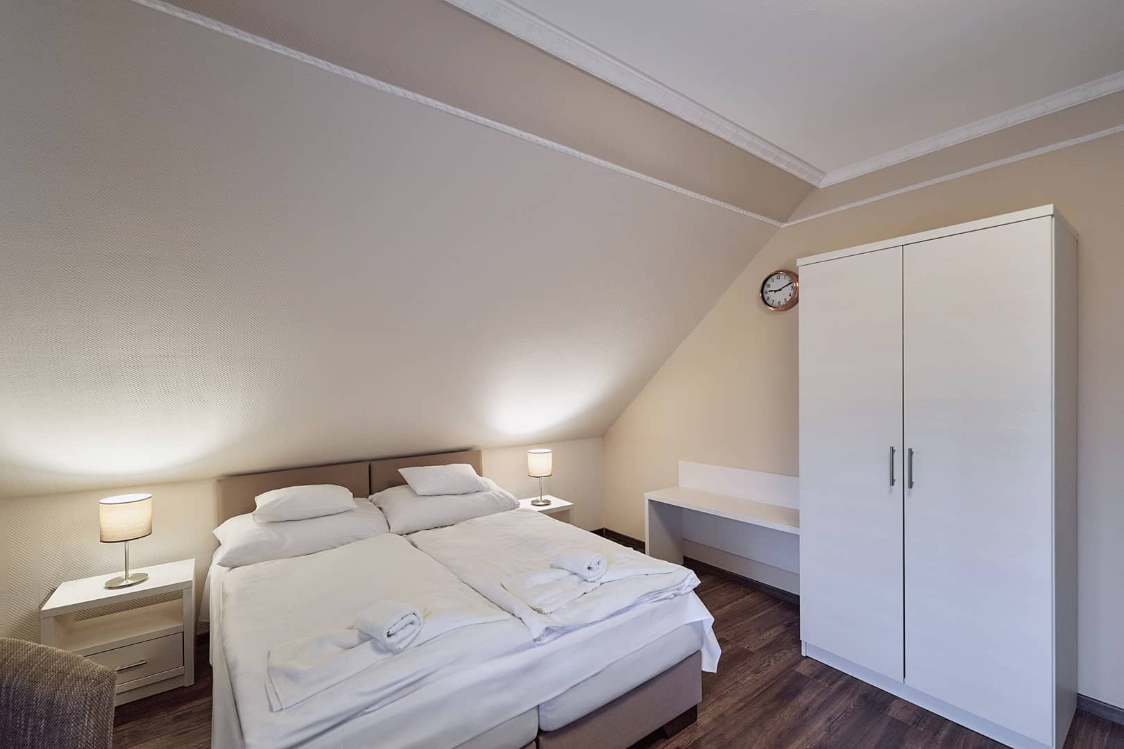 - Egyik szoba: 2 db összetolt egyszemélyes ágy (80 x 200 cm/ágy)